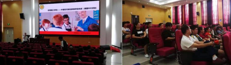 最新资讯 NEWS 德华冠欧 2019 年度新闻资讯(二) 深圳市龙岗区第二职业技术学校召开新生家长会 深圳市龙岗区第二职业技术学校召开新生家长会,会上重点向家长们介绍了国际留学项目。德国职业教育领先世界,随着中德两国合作伙伴关系的坚强,经济合作不断深入各个领域,未来越来越多的企业会相互投资,对既掌握先进技术和管理经验又懂得德语的高级人才的需求会不断加大,二职的学生到德国后接受全面的德式职业技能教育,毕业后继续留在德国企业工作,能够积累起丰富的工作经验,未来如果选择回国发展,作为国际人才完全有资格进入高端名企工作。会后,将组织有意愿的家长进行座谈,了解需求和解读疑惑。 “中德双元制创新试验班”的开班仪式成功举行 10月8日应深圳市开放职业技术学校的邀请,公司赴龙岗校区(区教育局直属职业培训学院)参加开放职业学校“中德双元制创新试验班”的开班仪式,会上公司负责人详细介绍了赴德参加德国双元制学习和就业的流程和项目优势,会后,公司学习顾问与学校相关部门进行协商确定下一步招生工作计划,力争把首个试验班办好办出特色。 为参加德国定向委培班的学生和家长做了详细的汇报 9日下午,公司留学顾问一行4人来到东莞理工学校(东莞职教城)学术报告厅,为参加德国定向委培班的学生和家长做了详细的汇报,会前学校赖副校长代表学校对整个项目的实施流程和优势做了概况发言,鼓励同学们勇敢地走出国门,去积累更多的国际化工作和学习经验,努力增强个人的国际化才能,打造核心竞争力,接着公司顾问针对学生未来到德国的职业和学业发展规划进行了详实的讲解,会后针对同学们和家长积极提问,顾问进行了耐心解答。本次报告会,内容丰富,讲解清晰,得到了家长和同学们的高度好评和认可。理工学校计划初期建一个德国双元制留学定向班,目前已基本完成招生报名工作,预计在10月下旬正式开班上课。